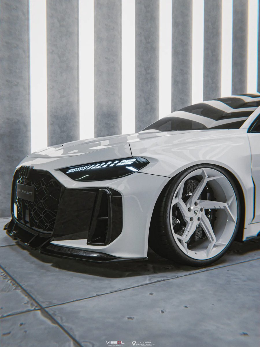 The design details are meticulous. The car sits on deep-dish white forged wheels that tuck neatly under the widened fenders, creating a stance that is impossibly low. A subtle chevron-patterned dazzle camouflage breaks up the sterile white paintwork on the roof and hood, adding a layer of texture that catches the light and confuses the eye. While the official market status for the B10 RS5 points to a global launch in 2026 with a price strictly on request (likely north of the base RS7’s $133,995), this digital concept serves as a preview of the aftermarket frenzy to come. It stands as a stark reminder that even as Audi moves toward electrification, the tuner culture will ensure the RS5 remains a weapon of mass distraction.