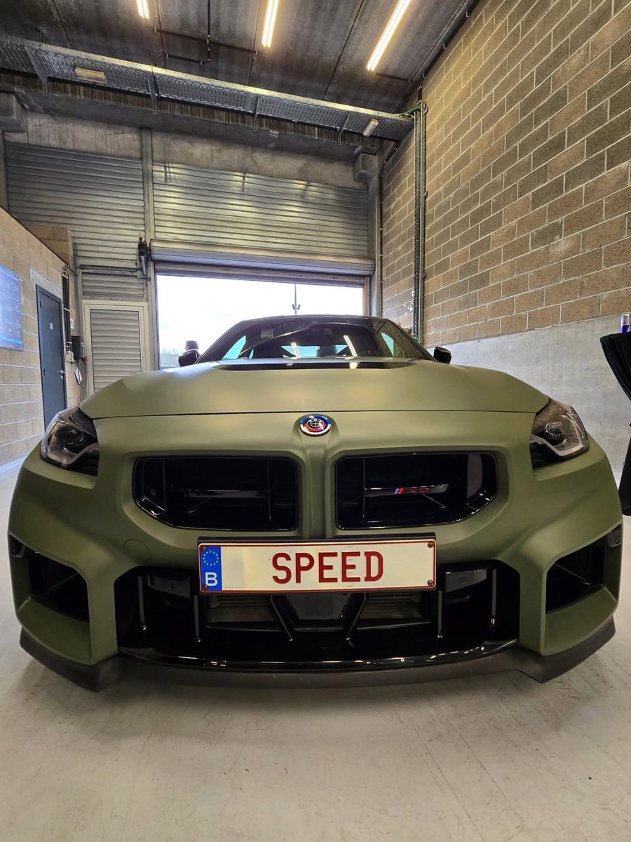 In the stark, industrial lighting of a Belgian parking garage, a G87 BMW M2 wearing a “SPEED” plate demands attention—not for its lap times, but for its audacity. This isn’t just another Munich coupe; it is a visual manifesto from the European tuner scene, specifically linked to the creatives at Blackbee.be and Sixnine Wheels. Flanked by a companion car plated “SHEITAN,” this build abandons the factory’s conservative aggression for a chaotic, polarizing “Need for Speed” energy that feels more at home in a video game lobby than the Nürburgring paddock.