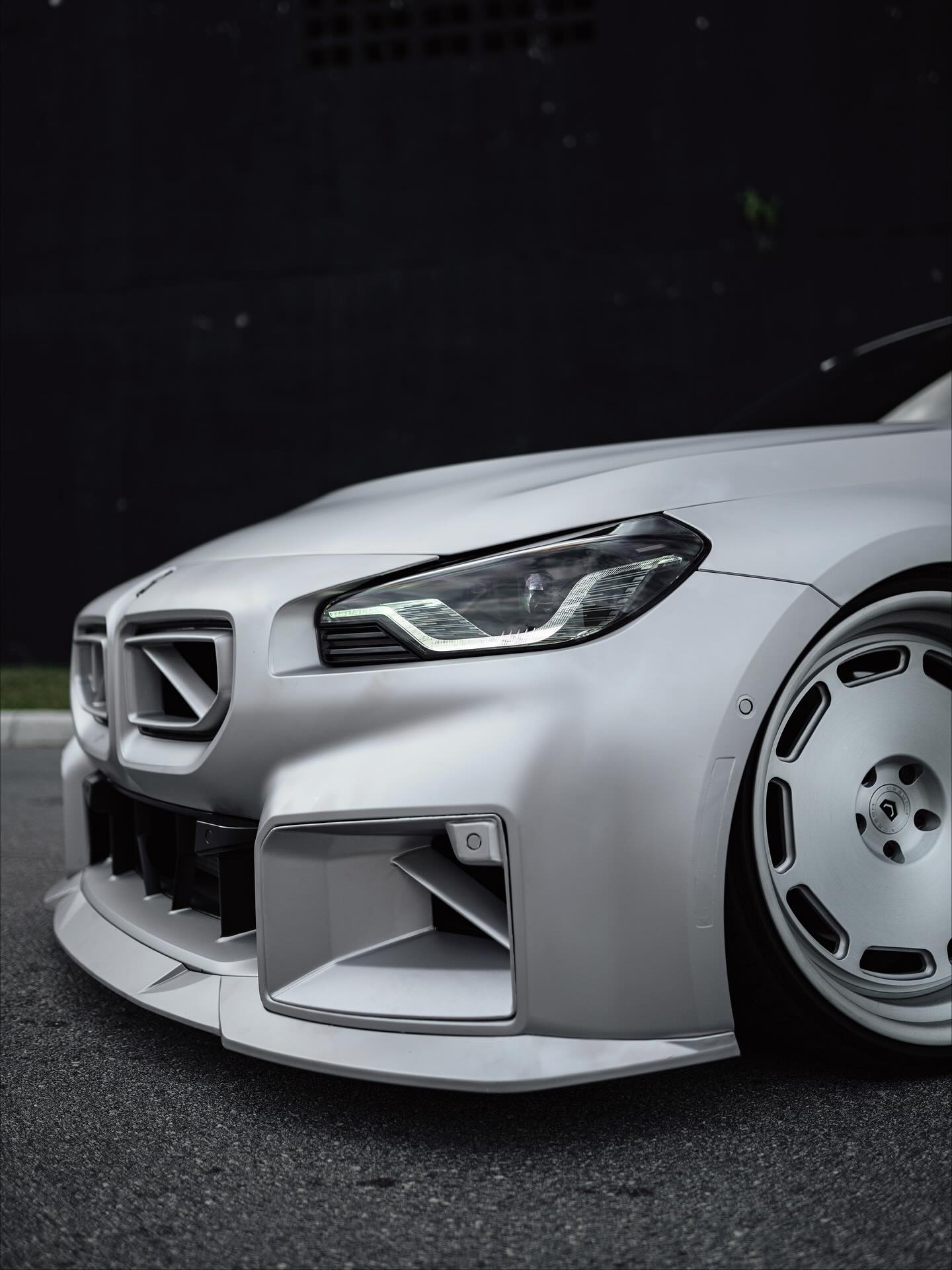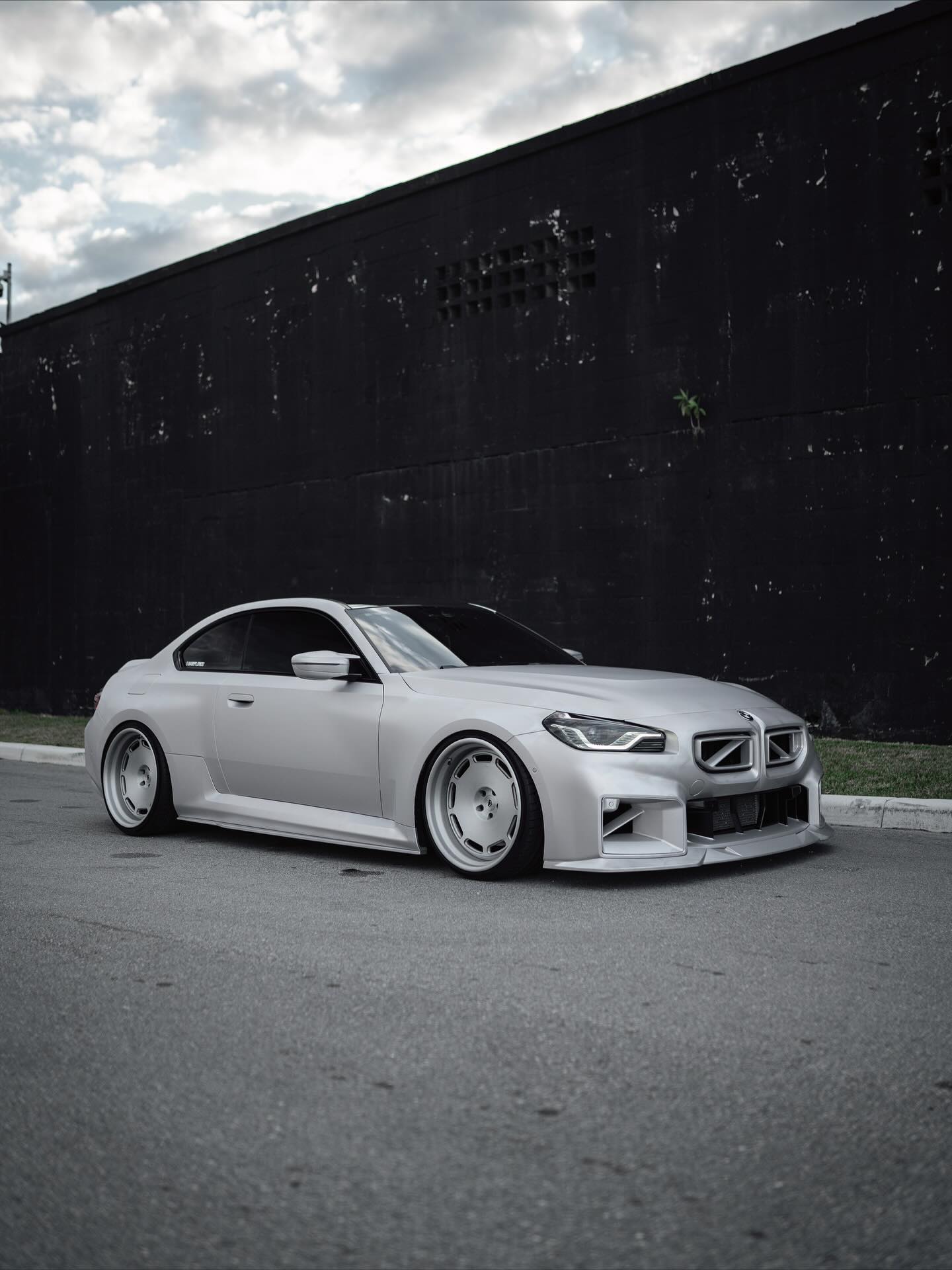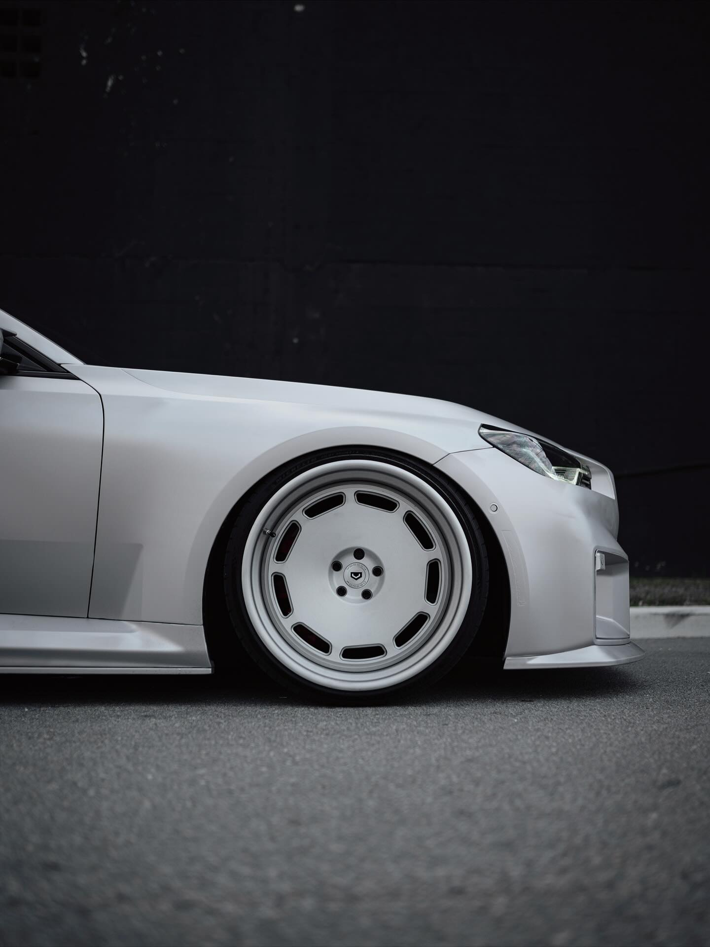 - The “Silver Surfer” G87 M2 redefines street presence with a satin aluminum finish and 21-inch Vossen forged wheels that perfectly fill the widened arches of this futuristic coupe.