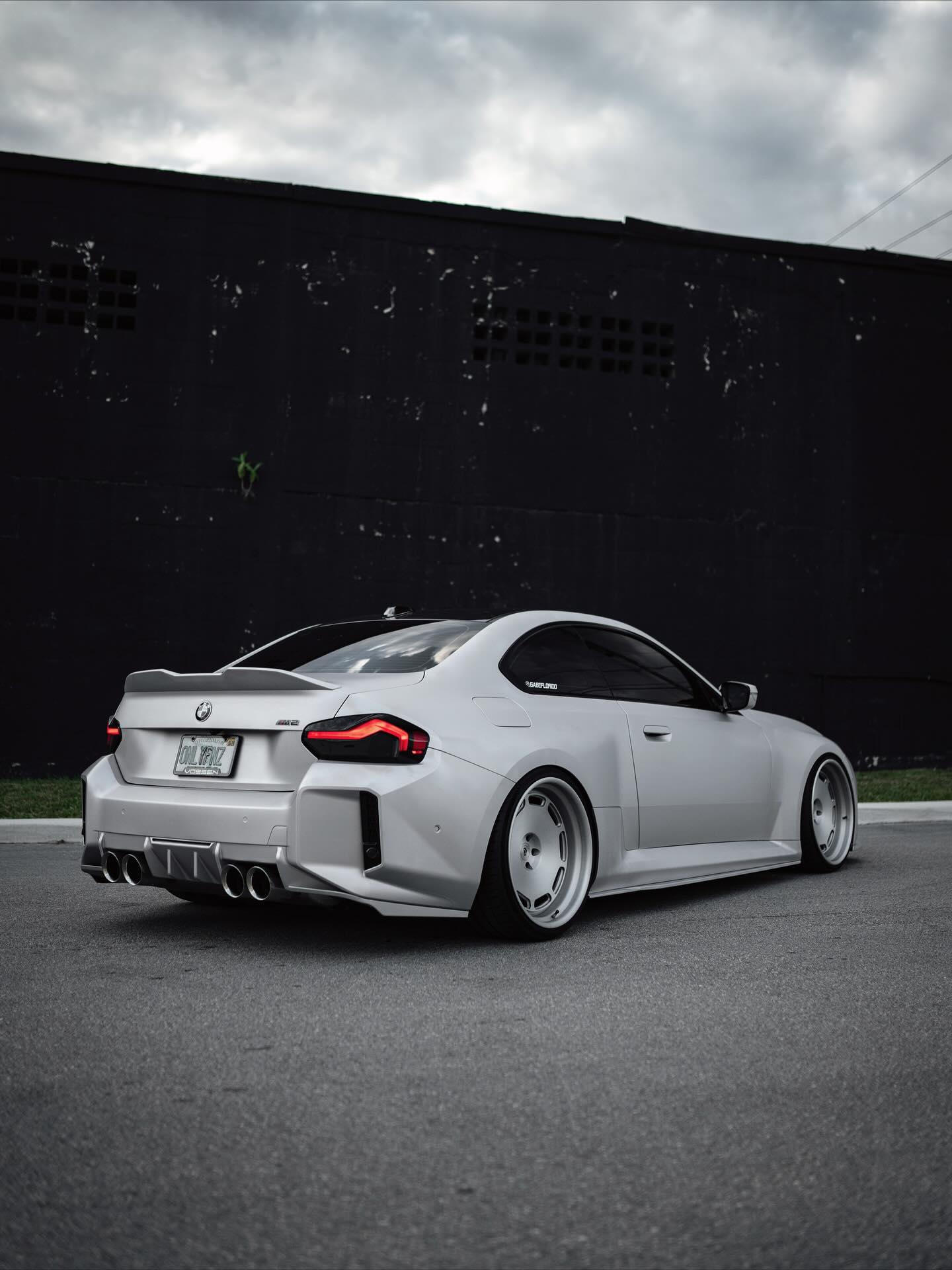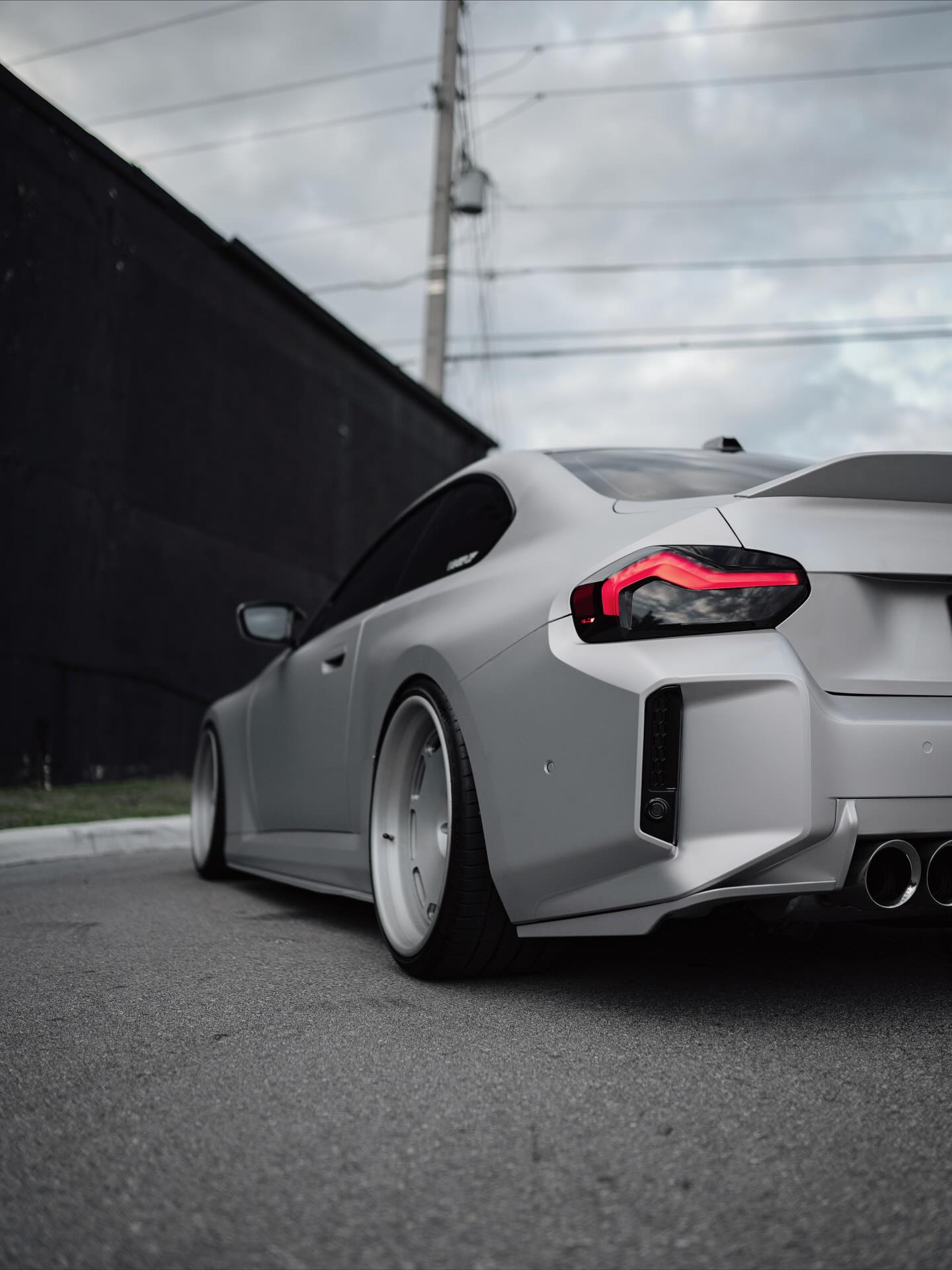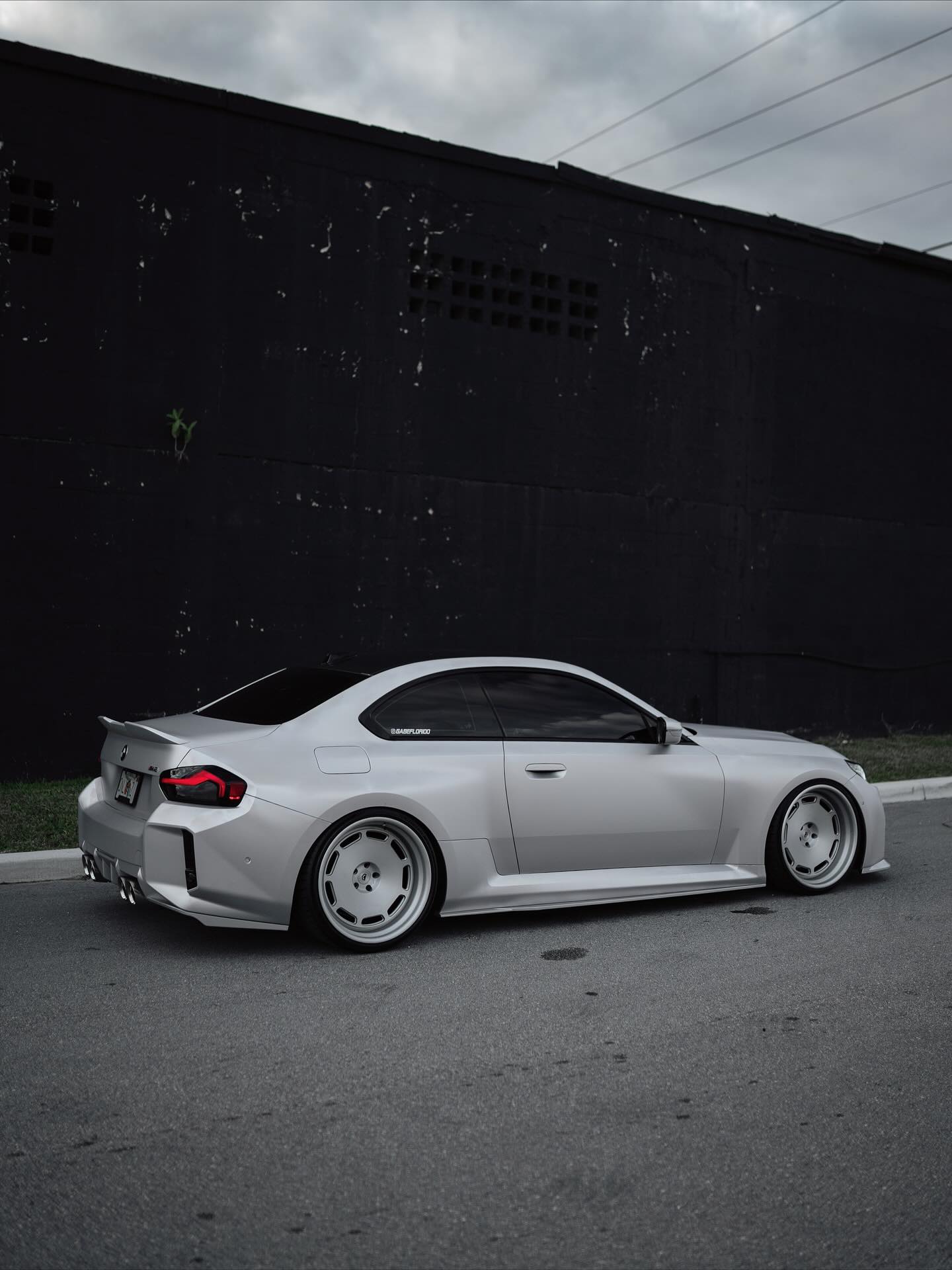 - The “Silver Surfer” G87 M2 redefines street presence with a satin aluminum finish and 21-inch Vossen forged wheels that perfectly fill the widened arches of this futuristic coupe.