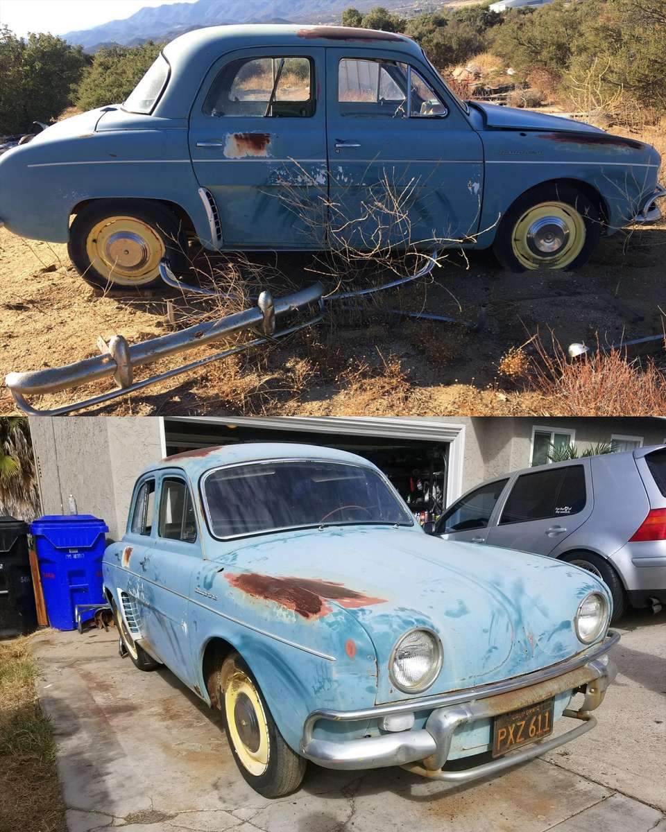 In the unforgiving terrain of a California desert property, a 1960 Renault Dauphine sat as a skeletal remains of French automotive history. Riddled with bullet holes, stripped of its floorboards, and filled with decades of rat droppings, the shell was acquired for a mere $700 on Facebook Marketplace. What seemed like an overpayment for a rust-bucket was actually the canvas for one of the most radical transformations in modern custom car culture. The builder, a Navy veteran with a background in precision engineering, traded the high-stakes danger of motorcycles for a four-wheeled project to ensure he could share his passion safely with his daughter. This wasn’t just a restoration; it was a total reimagining of what a micro-car could achieve when stripped of its 32-horsepower roots and infused with German muscle.